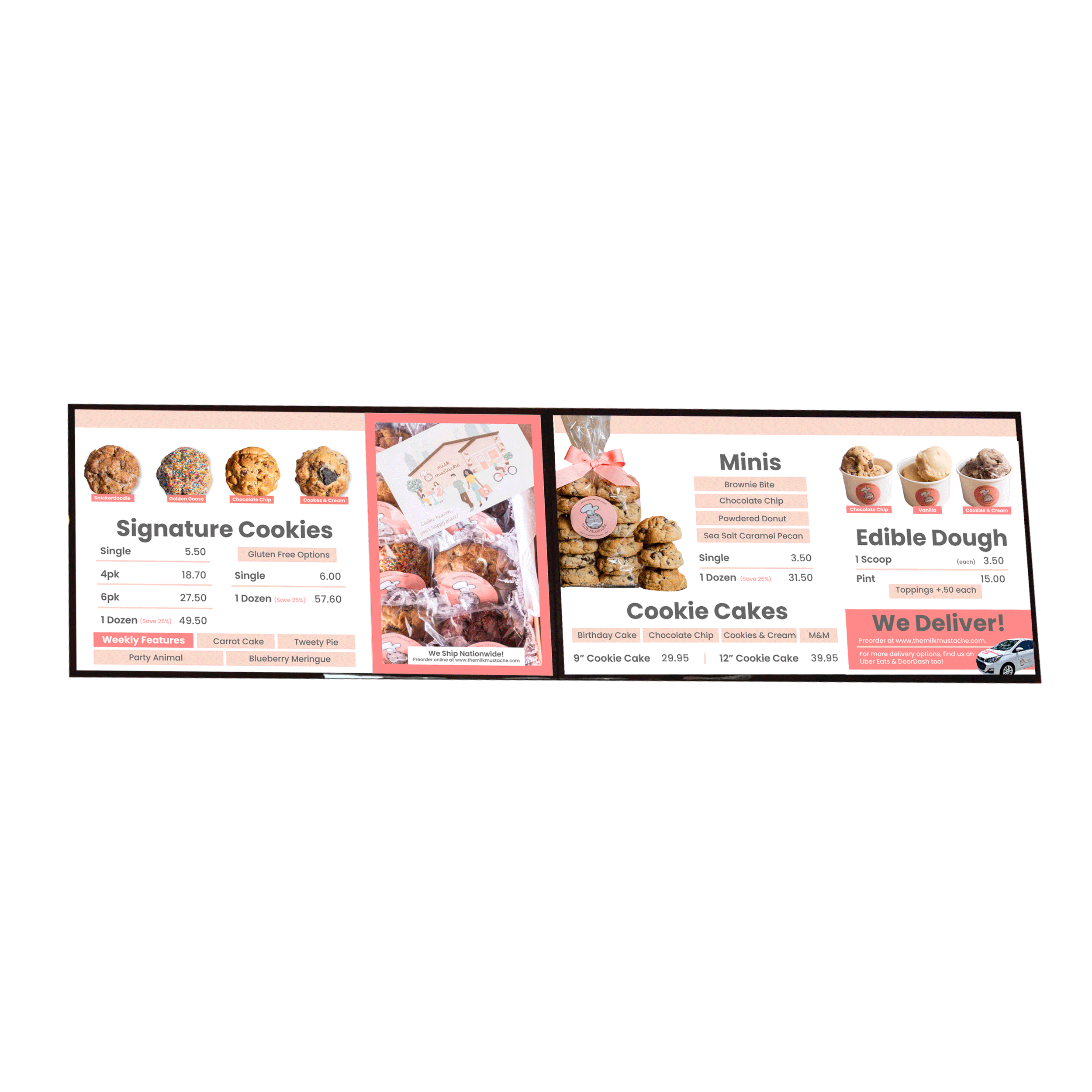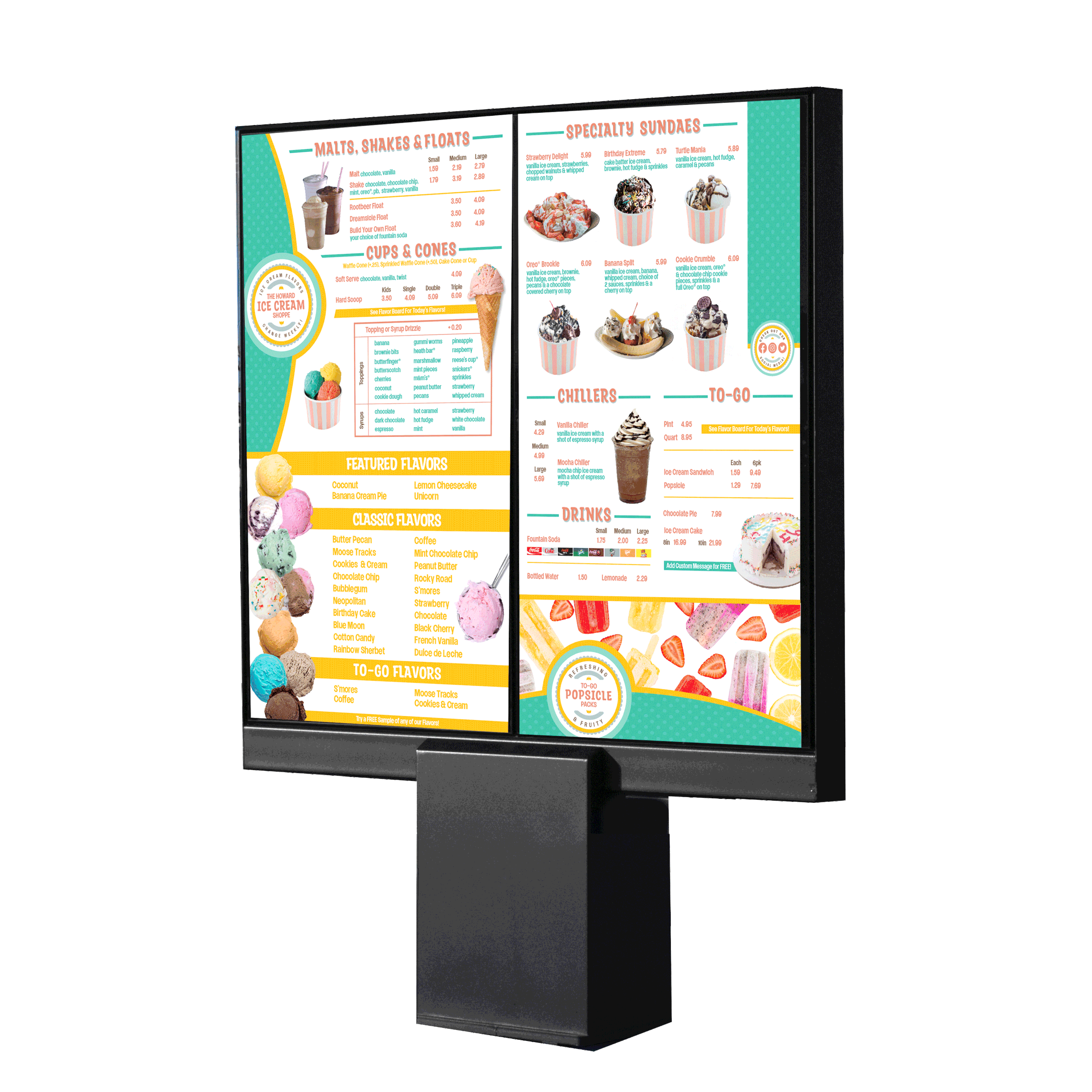 I designed indoor and drive-thru menus, signage, point-of-purchase materials, and limited-time offer promotions. Collaborated with a range of clients—from major brands to independent mom-and-pop restaurants, to develop menus that aligned with their brand identity and supported revenue growth. While I specialized in static printed graphics, I also created designs and templates for clients using digital equipment. I had the opportunity to make sample menus for industry events like the National Restaurant Association (NRA) Show to highlight our design capabilities and showcase our equipment in action.